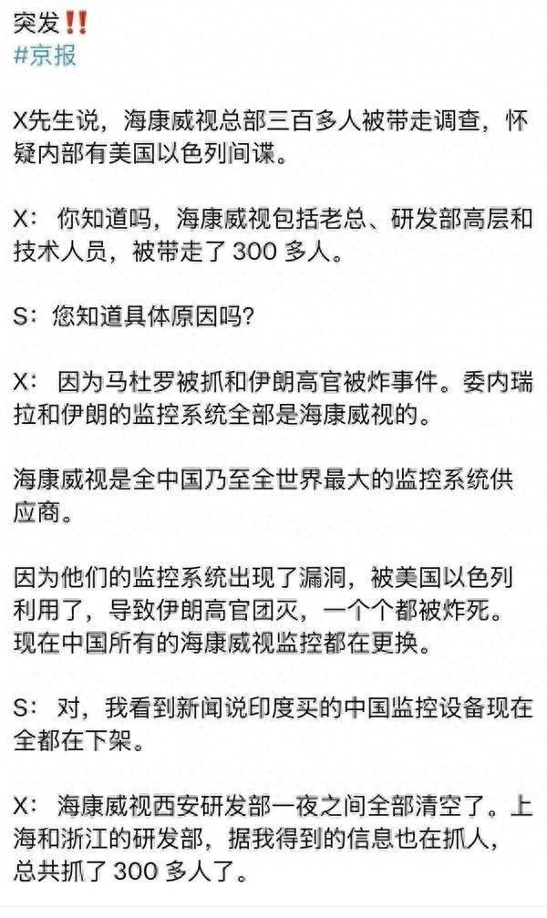 近日,一则关于海康威视的负面传言在社交平台迅速扩散。传闻中不仅声称海康威视的监控系统出现了重大漏洞,甚至还演变成总部有300多人被带走调查的极端说法。